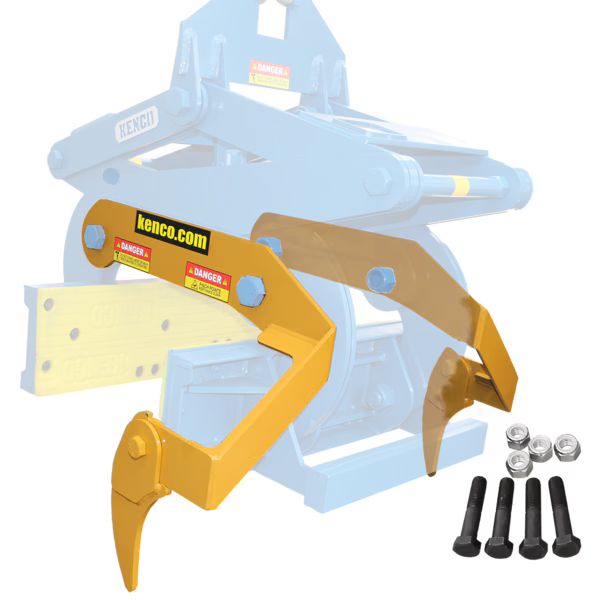 Alignment legs, bolt and nuts to fit Kenco KL40000 Barrier Lift. The legs attach to one side of the Barrier Lifter to allow the machine operator to lower the lifter onto the wall without need for a ground assistant to perform the same function. As the lifter is lowered, the protruding legs glide the Barrier Lift into position.