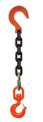 Single-leg chain assembly with foundry hook on one end and swivel rigging/latch hook on other end.