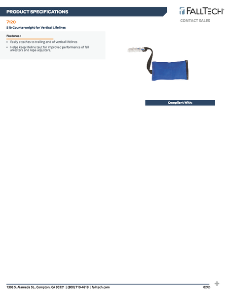 5 LB Counter Weight for Vertical Lifelines (PN 7120)