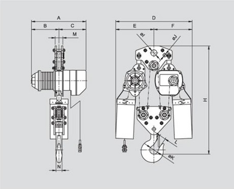 F Series Electric Chain Hoist 4,400 lbs WLL (YSF-200)