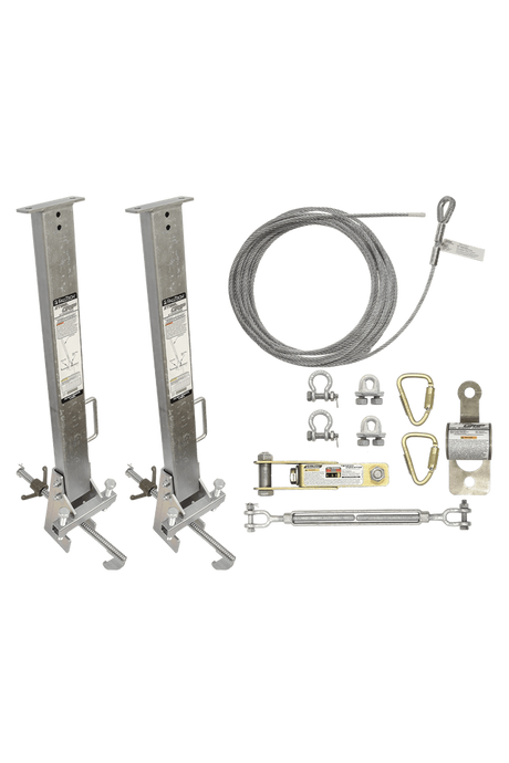 100' SteelGrip® Temporary Cable HLL System and Stanchions with 12" beam clamps (60310012)