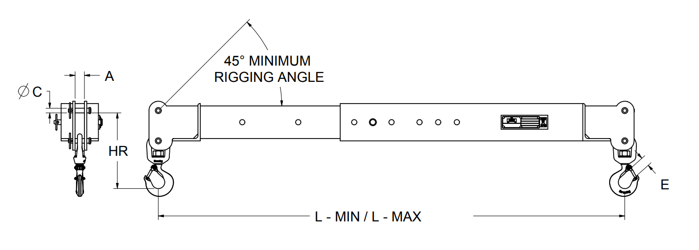 20,000 lbs 8-14' Adj Spreader Beam Swivel Hook Connections (12880)
