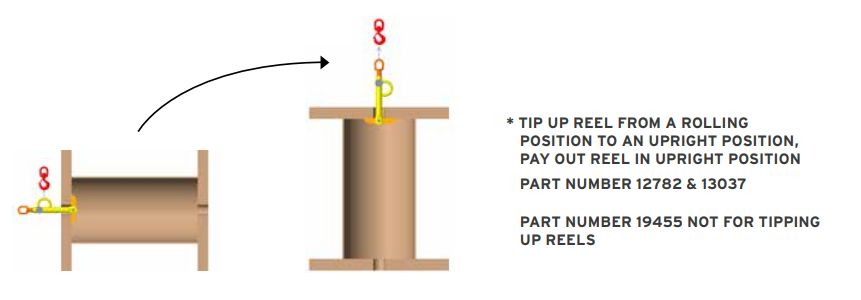 - Safely allows personnel to flip reels from rolling to non-rolling position quickly and easily.