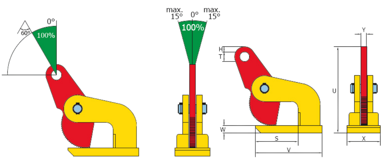 | MPN | Type | Working Load Limit (lbs.) | Jaw Opening (in.) | V (in.) | S (in.) | W (in.) | T (in.) | H (in.) | X (in.) | U (in.) | Y (in.) | Price | Quantity | |