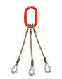 Three leg wire rope bridle with oblong master link on top and thimble eyes on bottom