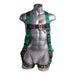 Full body harness with 5 point adjustment, Dorsal D-ring, Tongue and Buckle Leg Straps, and Fall Indicators. Multiple sizes. Meets or Exceeds ANSI Z359.11-2014. A10.32-2012.